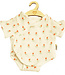 Süßer Puppenstrampler von Hollie. Der Strampler für Puppen besteht aus Baumwolle und ist beige mit einem orangefarbenen Blumendruck. Geeignet für Gordi-Puppen (+/- 34 cm). Lesen Sie mehr..