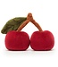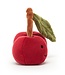 Das Jellycat Kirsche Plüschfigur ist dunkelrot, weich und zu niedlich. Zwei saftige, dicke Kirschen auf einem Zweig mit einem Blatt; so süß zum Spielen und Kuscheln.