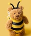 Jellycat Bear Bartholomew Bumblebee ist ein Teddybär, der ein Bienenkostüm trägt. Doesn't he look great? His torso has off a soft bee pattern of yellow and black. On his bear head, he has feelers, just like a real bee. And on his back are white velour wings. What a fantastic cuddly bee euh bear.