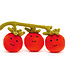 Sie sind nicht nur vollgepackt mit Vitaminen, sondern zaubern auch noch ein Lächeln auf die Lippen mit ihrem fröhlichen Aussehen. Dieser Strauß ist 18 cm lang und die 3 Tomaten sind durch einen grünen Zweig verbunden. Denn ja, sie sind gerade frisch geerntet worden.