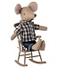 Ein klassischer Schaukelstuhl für eine Maileg-Maus! Der Schaukelstuhl besteht aus braunem Metall und ist für Mäuse bis zu 15 cm geeignet. Unglaublich niedliches Puppenhausspielzeug der dänischen Marke Maileg.