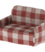 Eine trendige Bank für Maileg-Mäuse! Die Bank ist aus einem rot-beigen Leinenstoff gefertigt und für Mäuse bis zu 15 cm geeignet. Unglaublich niedliches Puppenhausspielzeug der dänischen Marke Maileg.