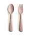 Das Mushie Kinderbesteck Blush besteht aus einem Kinderlöffel und einer Kindergabel und ist aufgrun..