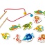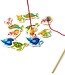 Für das Angelspiel gibt es zwölf Holzfische mit Magneten und zwei Angelruten. Die Fische sind auf der Rückseite nummeriert. Zähle die Anzahl der Fische oder Punkte auf der Rückseite, um herauszufinden, wer gewonnen hat.