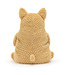 Jellycat amore corgi is a funny dog with a soft teddy coat. He has eaten too much and therefore likes to sit upright. Have you seen his sleepy eyes? Furthermore, he has sweet pointy ears and a black nose.