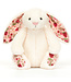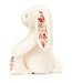 Jellycat Bashful Blossom Bunny Cream cute beige cuddly toy hare. She is super soft, has a cute tail and a pink nose. She also has beautiful details such as the strawberry print in her ears and under her paws. A lovely gift for children. Read more..