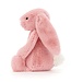 Jellycat Bashful Bunny Petal is a pink cuddly bunny! She is super soft, has long floppy ears and a round fluffy tail. The bottom is filled with pellets which keeps the soft toy upright.