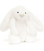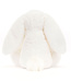 Jellycat Bashful Luxe Bunny is medium size and 31 cm tall. Furthermore, the bunny is snow white and has long floppy ears. The underside is weighted so the soft toy stays upright.