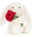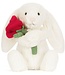 Jellycat Bunny with Rose holds a red rose in its hand. Super cute! This special Bashful cuddly toy b..