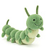 Jellycat Carys Caterpillar by Jellycat is an ultra-soft, moss-green plush toy with a pale green bell..