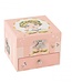 In this beautiful Moulin Roty music box Le Parisiennes, girls can keep all their treasures and jewels. The box is pink, has a lid and a drawer. When you open the lid you hear a music and the girl dances around.
