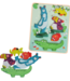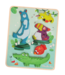 What a nice toddler peg puzzle this is! It is a Moulin Roty feel puzzle and consists of a wooden board with 5 different puzzle pieces in the shape of an animal. Underneath each animal is a different substance for your child to feel. Besides puzzling, your child can also play with the wooden animals and stack them.