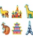 An educational world map puzzle to learn more about the animals, places of interest, vehicles by region. This 78 piece puzzle contains 17 special puzzle pieces shaped like icons from the region, such as the Eiffel Tower and the Taj Mahal. Read more..