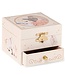 The beige jewellery box for girls makes music when you open the lid. On the inside is a compartment for jewellery and a mirror. The outside is decorated with beautiful drawings. Furthermore, it has a gold-coloured closure and a drawer for more jewellery.