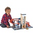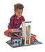 The Tender Leaf Toys garage is a comprehensive toy set including three cars and a helicopter. This garage is part of the transport collection of the American brand and is made of wood. The red car track from the second floor is made of plastic. There is also a lift that you can operate manually by turning the round knob on the helicopter platform. At the petrol station you can fill up the three included cars and there is also a car wash with barrier and rotating brushes.