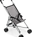 De grijze buggy voor poppen heeft een metalen frame en een stoffen grijze zitting met zwarte accenten. Dankzij de veiligheidgordel blijft pop goed zitten.