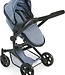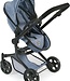Dit is de Bayer Chic 2000 poppenwagen 2-in-1 Mika, een trendy speelgoed wandelwagen voor poppen. De wagen heeft een stijlvolle kleurstelling, namelijk jeans blauw met zwarte accenten.