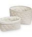 De Camcam commode mandjes zijn ideaal voor verzorgingsproducten en luiers. De set bestaat uit twee opbergmandjes van biologisch katoen met een doorgestikt patroon. Eén mandje is 24 x 17cm en het andere mandje is 22 x 15 cm. Lees meer..