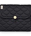Het Camcam verschoonmatje in het zwart met goudkleurige knoop is ideaal voor onderweg als je de luier van je baby wilt verschonen.