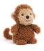 Dit schattige pluizige bruine vriendje is Jellycat Little Monkey. Een bruin knuffel aapje van zacht plush met een opvallend licht snuitje. Het knuffeldier is 18 cm groot, heeft korte armpjes, kort beentjes en een super leuk staartje. Zijn ronde oortjes en snuitje zijn beige van kleur.