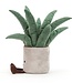 Deze blije bloempot met grote aloe vera plant is van Jellycat! Het is officieel een knuffel, maar deze misstaat ook zeker niet in de vensterbank. De plant zit in een grijze bloempot en heeft grote groene bladeren. Zie je ook de potgrond onder de aloe vera plant en die bungel beentjes? Het zijn de kleine details die een Jellycat knuffel bijzonder maken.