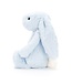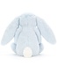 Jellycat Bashful Bunny Blue is een blauw knuffel konijn van 31 cm (maat medium)! Hij is super zacht, heeft lange slappe oren en een rond pluizig staartje. De onderzijde is gevuld met korrels waardoor het knuffeldier rechtop blijft zitten.