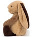 Jellycat Bashful Bunny Patchwork is een zijdezacht knuffel konijn met bruine vacht, lange flaporen e..
