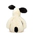 Jellycat hond Bashful in de kleur zwart-wit met een super zachte gevlekte vacht en zwart staartje. D..