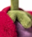 Naast dat ze boordevol vitamine zit, maakt ze je ook nog eens aan het lachen met haar vrolijke blik. Ze is 16 cm lang, mooi paars en op haar hoofd heeft ze een groen takje. Want ja, ze is net vers geplukt.
