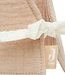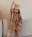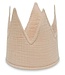 Het product is gemaakt van een zacht mousseline stof en heeft een lichtbruine kleur. De kroon heeft aan de achterzijde twee koordjes zodat je deze op de gewenst maat kunt sluiten. Dit kroontje van stof is geschikt voor kindjes van ongeveer 1 t/m 4 jaar.