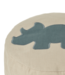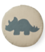 Deze Liewood zitzak is rond, lichtgrijs en heeft een handvat zodat je deze gemakkelijk kunt dragen. De hoes is gemaakt van katoen en de opgestikte triceratops dinosaurus is blauw.