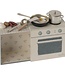 In deze mooie Maileg keuken met keukengerei kan chef kok muis de lekkerste maaltijden koken. De Maileg cooking set micro bestaat uit een uitschuifbaar doosje met een voorstelling van een gasfornuis en keukenkastje en is inclusief;