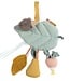Op het blad zit een pluizig bruin egeltje met een belletje in zijn buik, dat vrolijk rinkelt bij elke beweging. Verder hangen er leuke figuren aan, zoals een radijs met belletje, een peer die piept als je erin knijpt en een blad gevuld met knisperpapier. Ook zit er een lusje aan met klittenband zodat je het babyspeelgoed ergens aan kunt bevestigen.