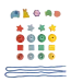 Het houten kralen speelgoed komt uit de Moulin Roty Les Toupitis serie. Er zijn kralen in de vorm van dieren, sterren en andere figuren.