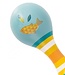 Moulin Roty maracas Voyage d'Olga kan je kindje muziek maken. De houten maracas is blauw met verschillende kleuren en is 15 cm lang.