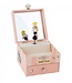 In dit prachtige Moulin Roty muziekdoosje Le Parisiennes kunnen meisjes al hun schatten en sieraden bewaren. Het doosje is roze, heeft een klep-deksel en een lade. Als je de deksel opent hoor je een muziekje en danst het meisje rondjes.