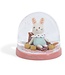 Moulin Roty sneeuwbol met een lief konijntje dat op een herfstblad zit en wacht op de vallende sneeu..