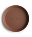 Dit is pas stylish kinderservies van Mushie! De set bestaat uit twee ronde borden in de kleur carame..