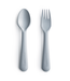 Het Mushie kinderbestek Cloud bestaat uit een lepel en een vork en is mooi door het minimalistische ..