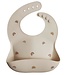 Silicone slabbetje van Mushie is beige en heeft een schattige gekleurde regenboog. De beige slab is ..