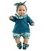 Paola Reina pop Julia komt uit de Manus collectie en is een prachtige pop met zacht lijfje. Haar hoofd, armen en benen zijn van vinyl. Julia draagt een blauw poppenpakje dat bestaat uit een broekje, trui, haarband en sokken met strikjes.
