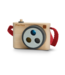 Dit is een Plan Toys speelgoed camera van hout met een ontspanknop die ingedrukt kan worden en een lens die draaibaar is. Als je door de lens kijkt en draait zie je blauw, geel of normaal. Dit product heeft een formaat van 10,3 x 4,6 x 7,9 cm en is het ideale cadeau voor kindjes vanaf 18 maanden.