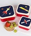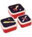 Toffe Rex London snackdoosjes met het thema ruimtevaart. De set bestaat uit drie rode doosjes in ver..