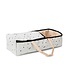 Deze Skrallan reiswieg voor poppen is echt een hit uit de collectie. Dit komt door de Scandinavische kleurstelling en het trendy stippen dessin. De poppenreiswieg is gemaakt van stof en heeft een flap met een ritssluiting zodat de pop eenvoudig in en uit de wieg kan worden getild. Door de afmeting van 49 x 22 x 12 cm is dit product geschikt voor poppen van maximaal 45 cm lang.